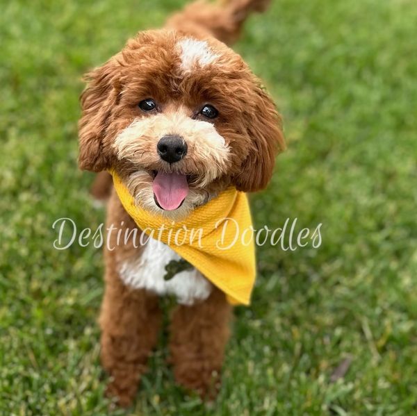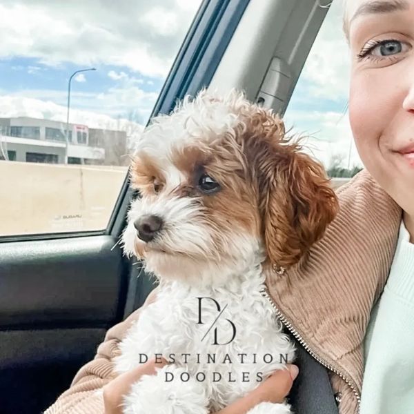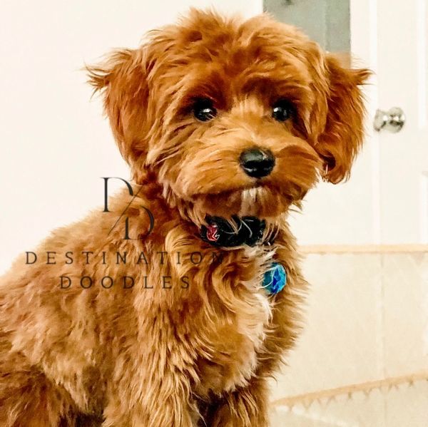 Augustus (Auggie) is a multigenerational cavapoo stud. He is 36.5% Cavalier which is incredible for how small he is. This is our retired mama Cali's grandson and the son of our stud Charlie. We cannot wait to have more of this bloodline in our program. We've been wanting a blenheim cavapoo like him for a long time and we are so excited about him. He might be small, but he is mighty!