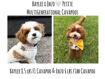 3. BAYLEE (8.5 lbs) x ENZO (6 lbs) Red abstract and Blenheim Multigenerational Cavapoos- Pregnancy NOT YET confirmed. If successful, Baylee is due 2/24/26