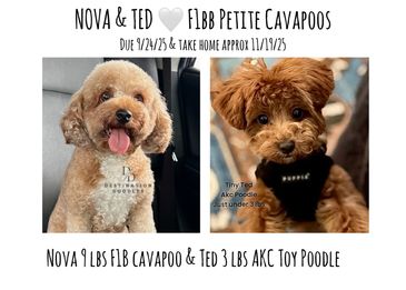3. NOVA (9 lbs) x TED (3 lbs) for teeny tiny F1bb petite cavapoos. Pregnancy NOT YET confirmed, if successful Nova is due 5/27/26